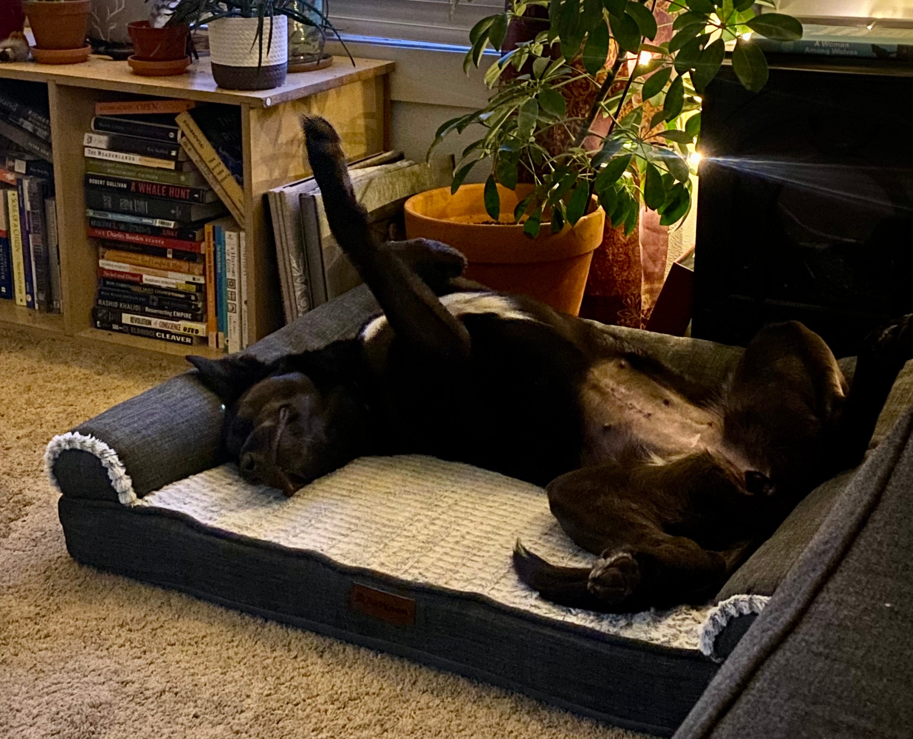 Anyone who knew me knew where this volunteering would lead. One could say I was unconsciously, casually shopping. But it was still a surprise, even to me, when my husband and I brought home a two-year-old stray mutt from the shelter at the end of March. She was absolutely amazing for the first two days. “We lucked out!” we said to each other.